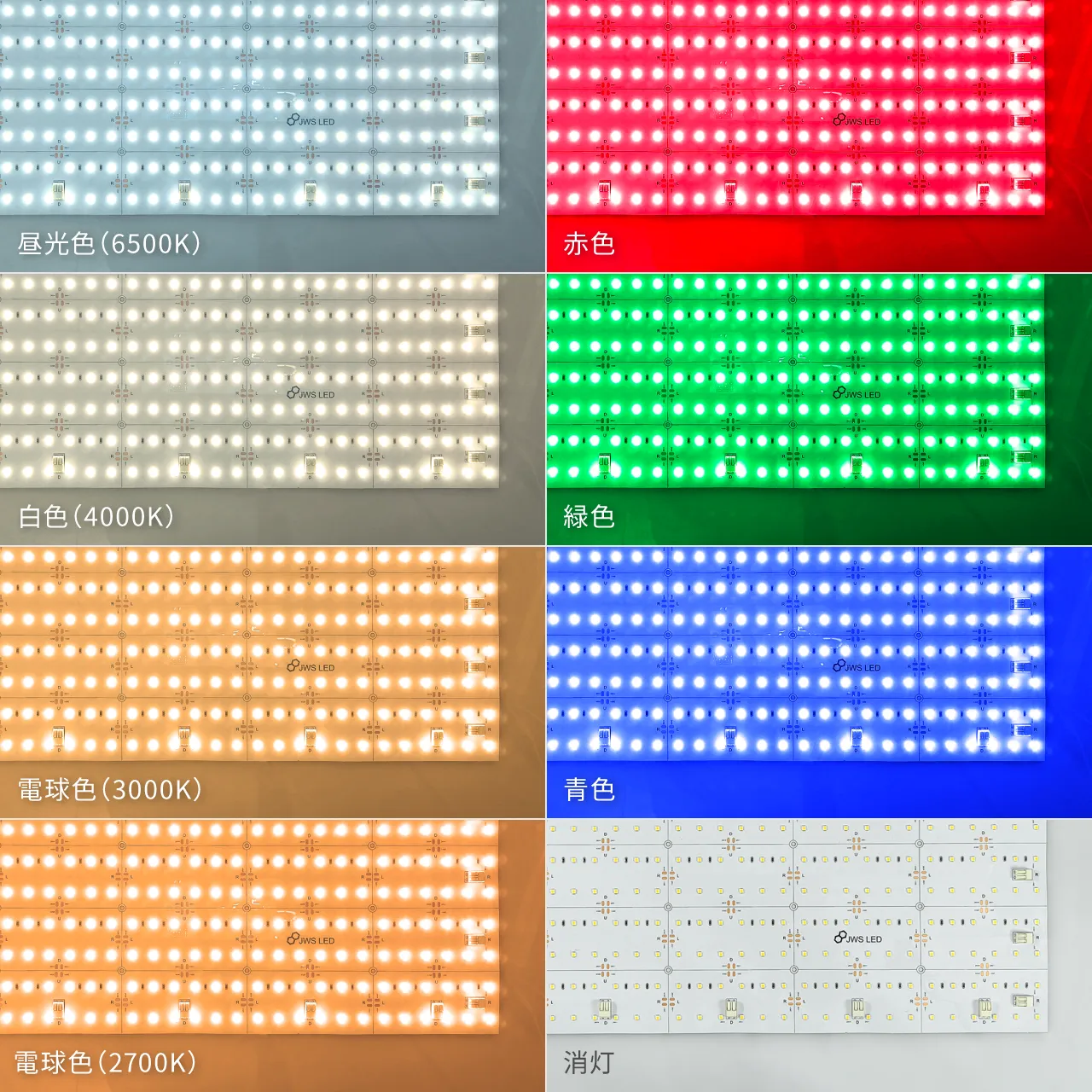 - 6500K, 4000K, 3000K, 2700K, 赤, 緑, 青