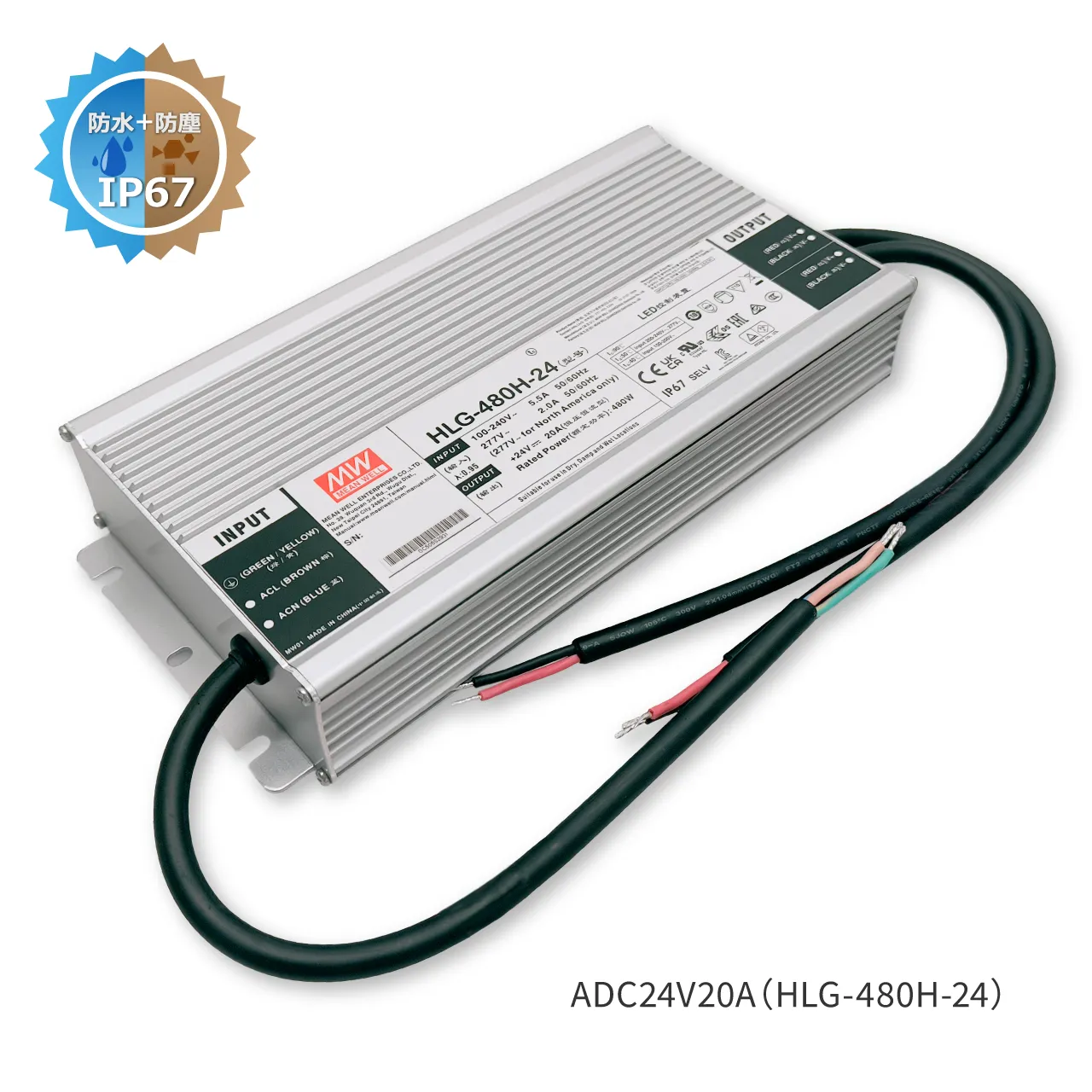 スイッチング電源防滴タイプ 480W|DC24V 20A
